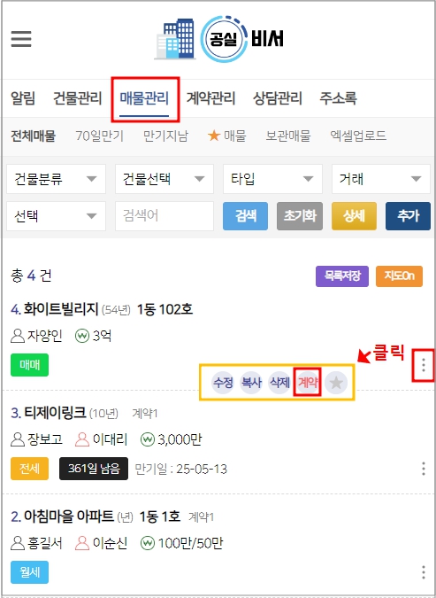 1. 매물관리 > 매물 리스트의