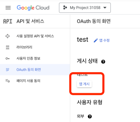 Step 4. OAuth 동의화면 게시상태 - 앱 게시로 꼭 눌러주세요