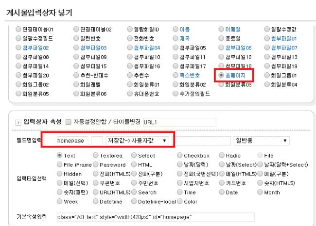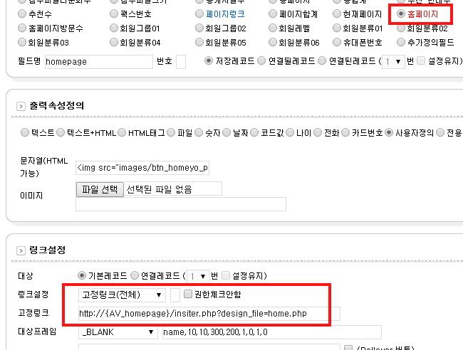 쓰기폼에서 f눌러서 링크 1~3을 넣고 설정을 홈페이지 - 저장값으로 했는데