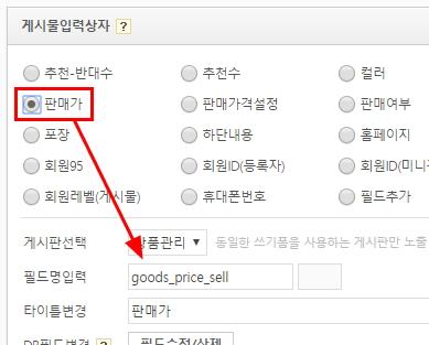 게시물입력상자에서 판매가(goods_price_sell)로 선택