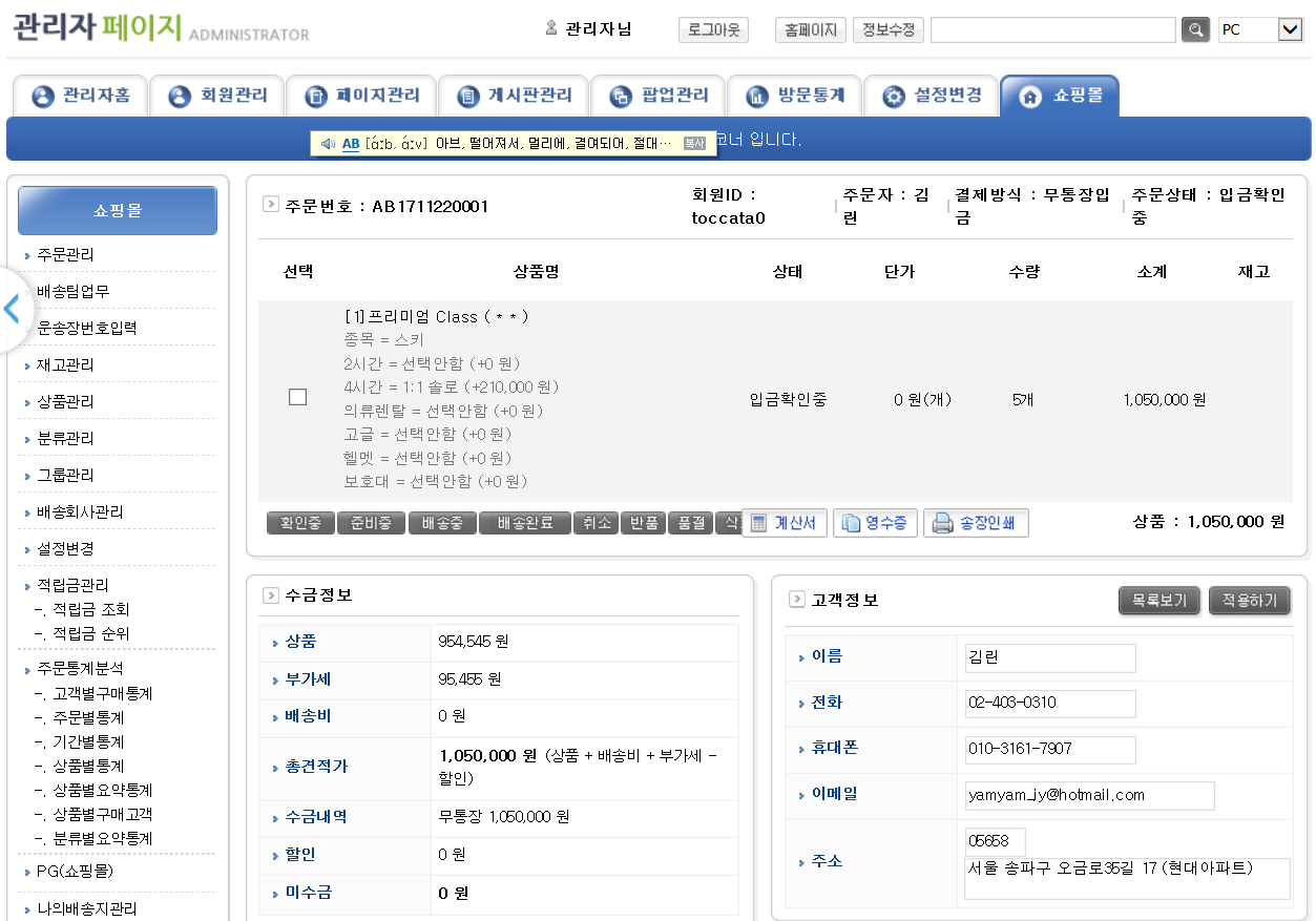 아래 캡쳐화면을 보시면 그와 다르게 수량이 일괄적용되어 주문이 올라와있습니다.