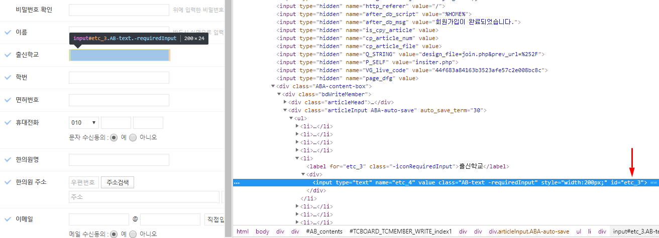 회원가입 페이지 폼 편집을 하였습니다.