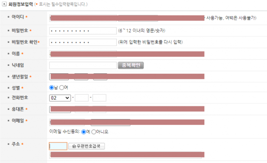 1) 주소검색 후 등록 완료 > 회원가입 진행