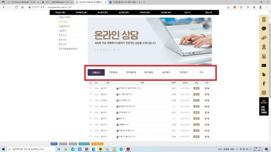섬세하게 치유하는 주앤클리닉 > 커뮤니티 > 온라인상담 (juanclinic.com)![]()