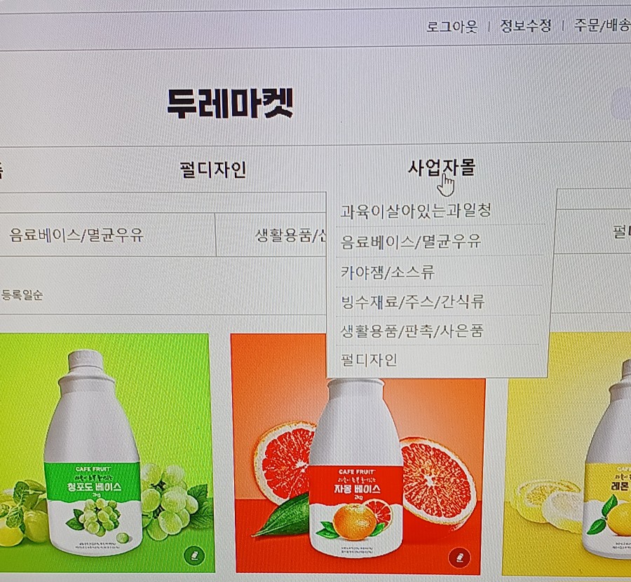 사업자몰 클릭했을때 보이는 카테고리가 전부 보이지 않고 위 이미지처럼 일부만 보입니다