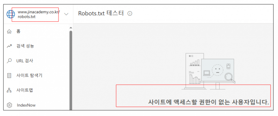 위 계정에서 빙 검색엔진이 서버에서 차단되고 있습니다.