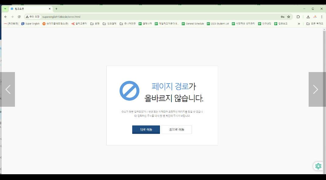 그리고 일부 컴퓨터에서 게시판에 글쓰기를 하면 페이지 경로가 올바르지 않습니다 라고 나옵니다.