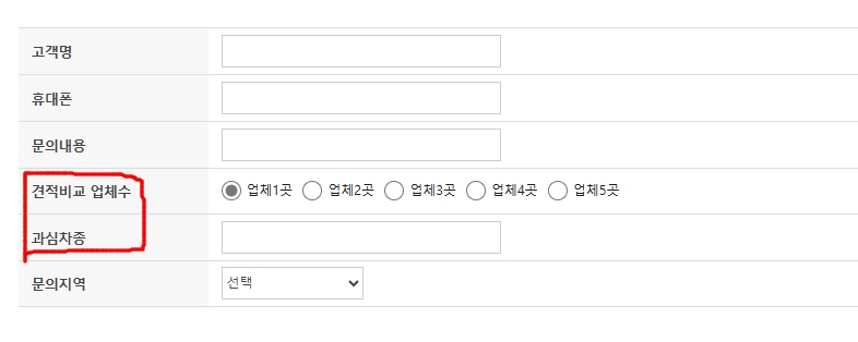 만든 폼 양식과(아래 이미지), 접수된 DB 양식(위 이미지)를 각각 이미지로 접수해 드리겠습니다사이트 : dbone.co.kr