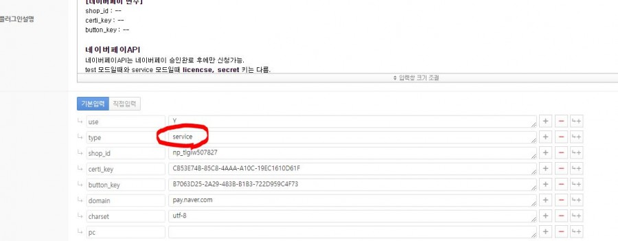 네이버페이 가입 후 받은 키값을 설정해 주시고, 나머지 진행 사항도 매뉴얼에 따라 진행해 주시면 됩니다.