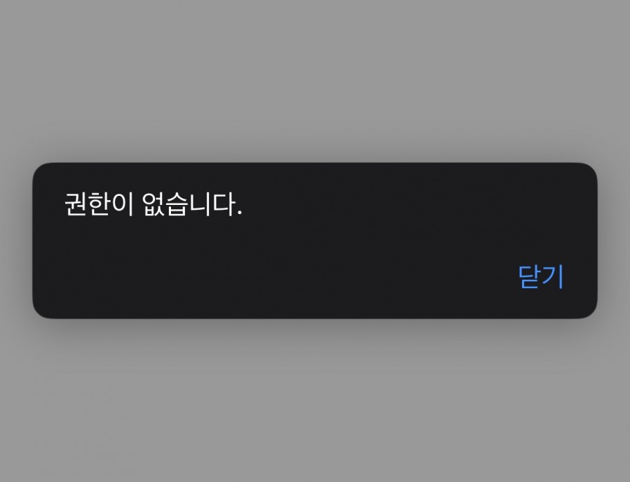 모바일에서는 위 팝업에서 확인을 클릭하면 아래처럼 권한이 없다는 팝업이 또 뜹니다.