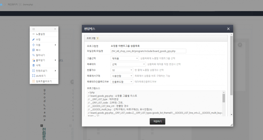 현재 편집박스는 이렇게 나오는데 어떤 부분을 수정해줘야 상품이 보일까요?