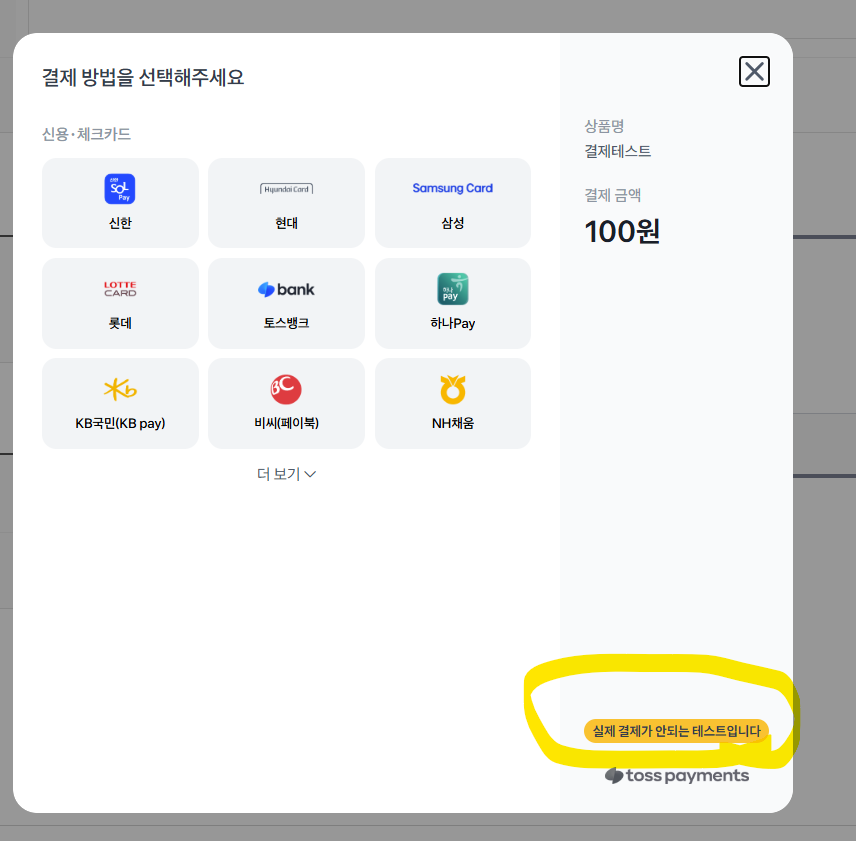 현재 설정된 상태에서 결제 테스트 결과, 테스트 화면이 정상적으로 작동하며 테스트 결제가 성공적으로 이루어졌습니다.
