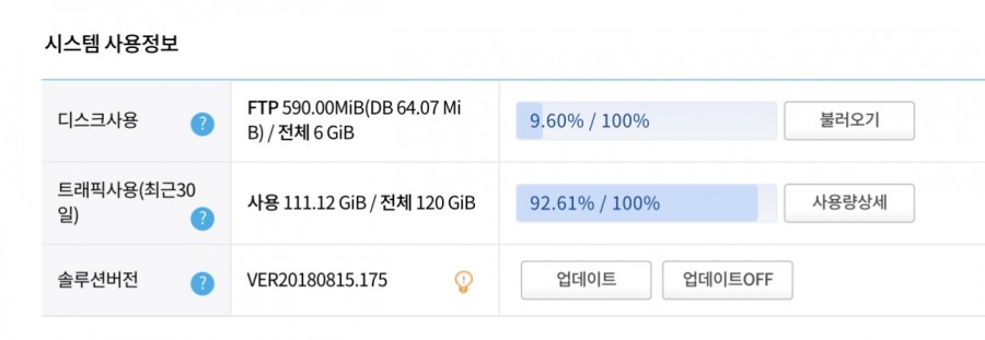- 약정 트래픽을 초과한 경우 상위 사양으로 변경하거나 트래픽 추가 신청을 해주시기 바랍니다.