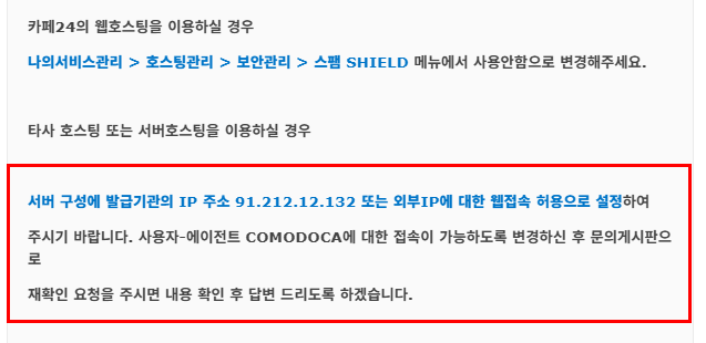 그리고 나서 카페24에 문의하니 메일을 보내주셨습니다