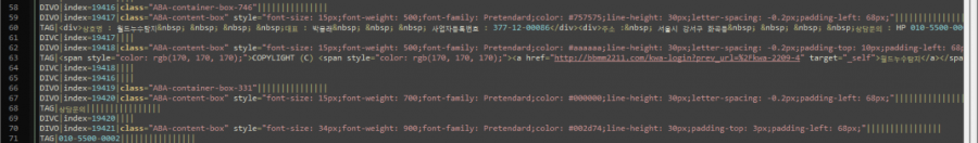 소스 확인 시 소스의 구조가 일반적인 파일이 아닌 것 같다고 합니다. 위 소스의 경우 /public_html/design/ko/souce_p/footer.php 파일의 일부인데 공통 스크립트 태그를 바로 붙여넣기가 되지 않습니다. html 형식 등으로 구성되어 스크립트 태그를 넣을 수 있는  공통 영역 소스 파일의 경로 확인이 필요합니다. html 수정이 가능한 파일 경로를 확인해 서 연락 부탁드립니다.