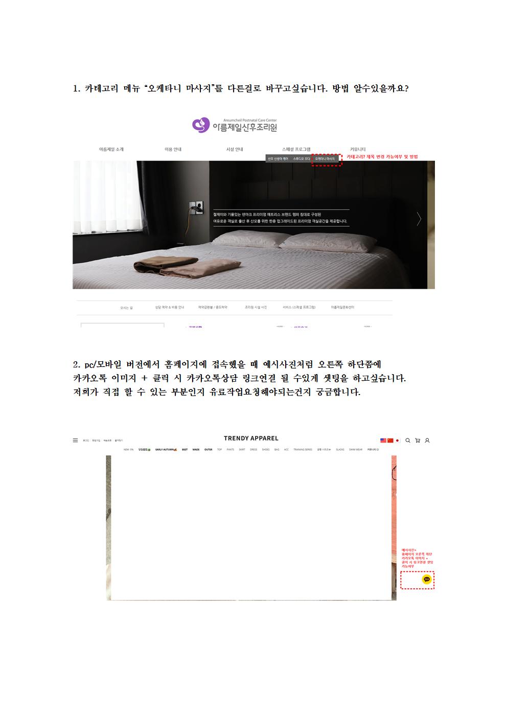 [RE] 홈페이지 카테고리 제목 변경방법+카카오톡셋팅 문의