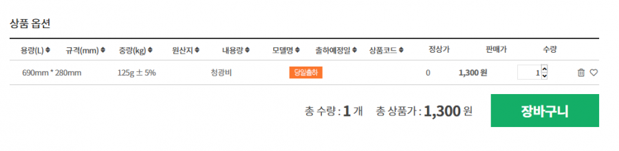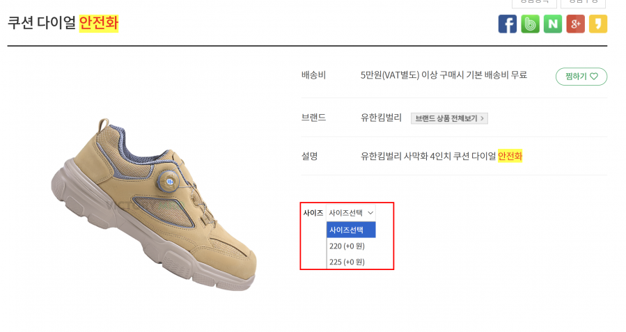 선택하는 목록이 나오는데요 사이즈를 선택했을때