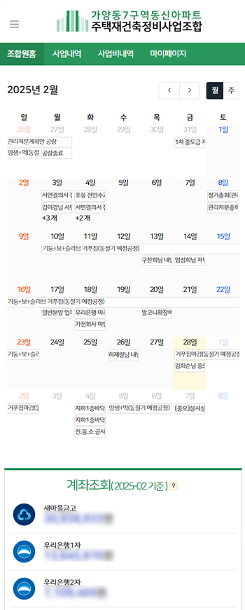 조합원용 실시간 계좌조회, 파일조회, 사업 타임라인 조회 시스템을 제공하여 신뢰기반, 빠른 사업추진이 가능합니다.