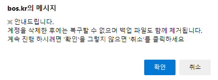 - 호스팅 계정 자체를 삭제하기 때문에 DB/DATA가 모두 삭제되며, 삭제된 후에는 복구가 불가능합니다.