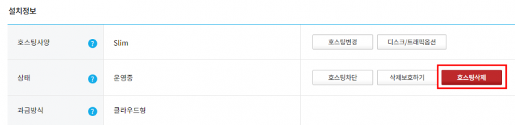 - 호스팅삭제