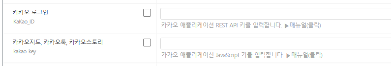 2. 발급받은 키 중에서 REST API 키와 JavaScript 키를 설정변경에 입력해 주세요.