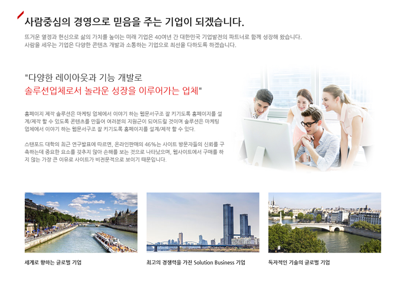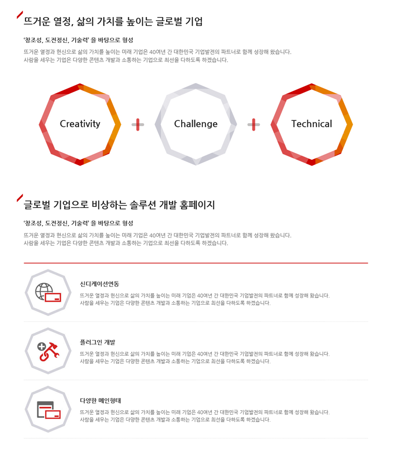 서브페이지 5장 (인사말/비전 및 목표/연혁/사업영역/기술소개)