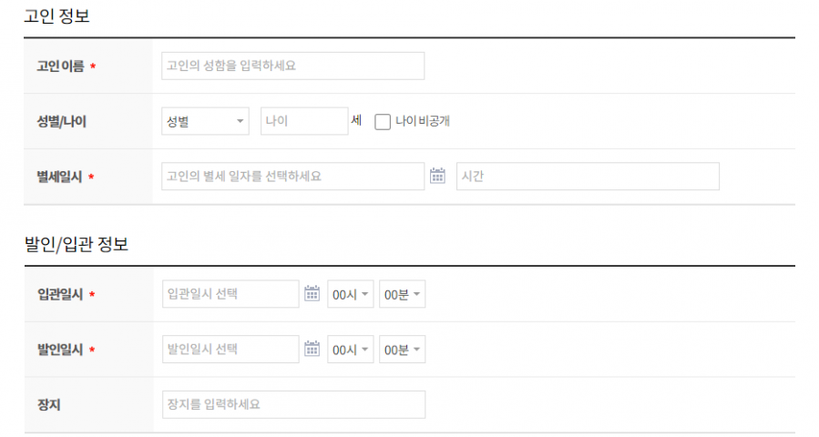 쉽고 빠르게 필요한 정보만 입력하면 "웹 부고장" 제작이 완성됩니다.