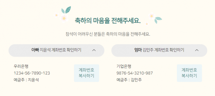 - 축하의 메세지를 남겨보세요. (댓글기능)