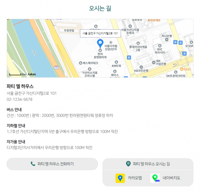 3. 행사장 전화하기/오시는길(카카오맵/네이버지도 연동)