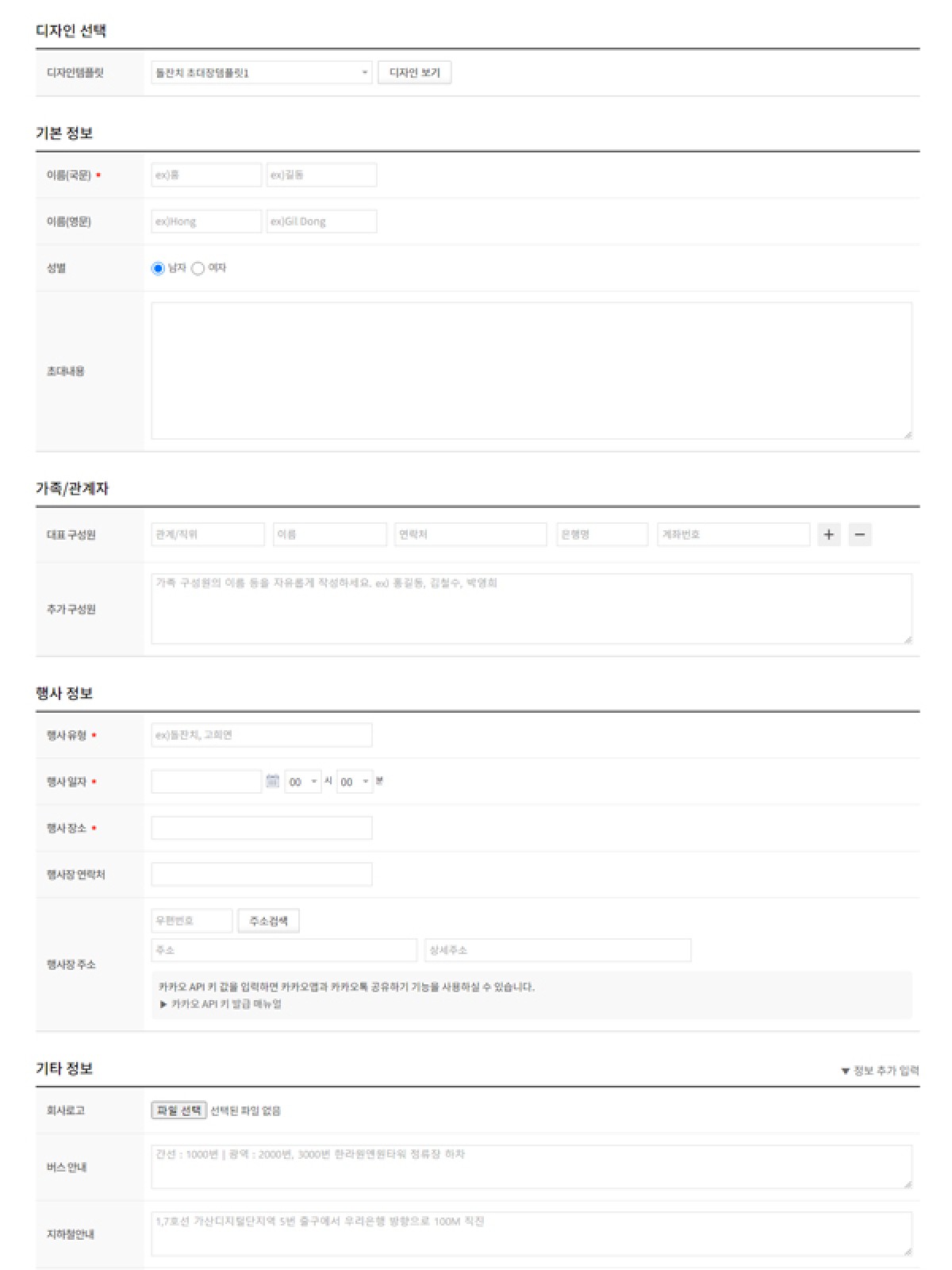 쉽고 빠르게 필요한 정보만 입력하면 "웹 초대장" 제작이 완성됩니다.