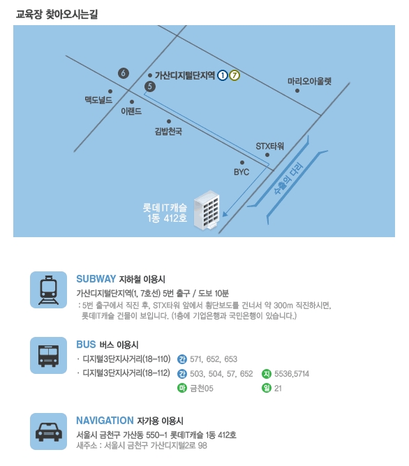 교육장 찾아오시는길 (롯데IT캐슬 412호)
