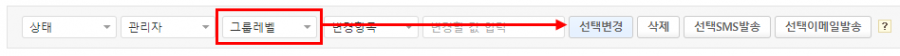 선택하시면 우측에 또 한 번의 그룹레벨이 나옵니다. '총관리자'로 선택하신 후, 파란색 선택변경 버튼을 클릭해주시면 총관리자로 회원레벨을 변경하셔서 기존처럼 관리자홈의 메뉴를 확인하실 수 있습니다.