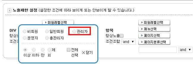 버튼,글쓰기버튼,게시판글쓰기,버튼노출설정, 노출제한설정, 노출제한설정변경,페이지편집,관리자,회원레벨,보기페이지,div노출설정,보기폼,[RE]