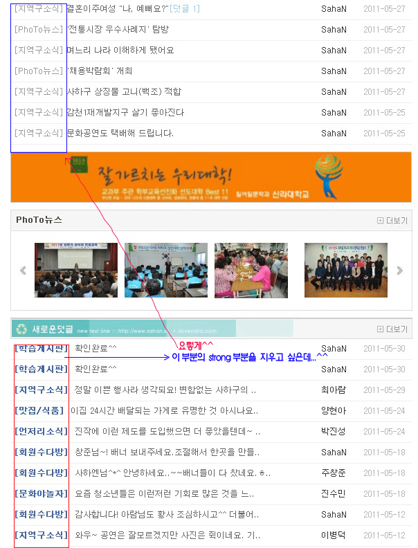 디자인관리 >> F 아이콘 클릭 >> [bd_name] 클릭 >> 게시판도구의 게시물 항목 >> 시작태그 끝 태그의 <strong> 제거 하시면 됩니다.^^