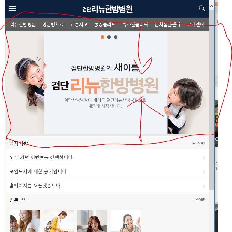 모바일페이지를 작성중.메인페이지 변경을 위해 리뉴얼페이지를 만들어 작업하던중 스크롤이 사라졌습니다...비주얼배너를 적용한 후에 스크롤이 사라지고 M-서브레이아웃을 적용한 다른 ...