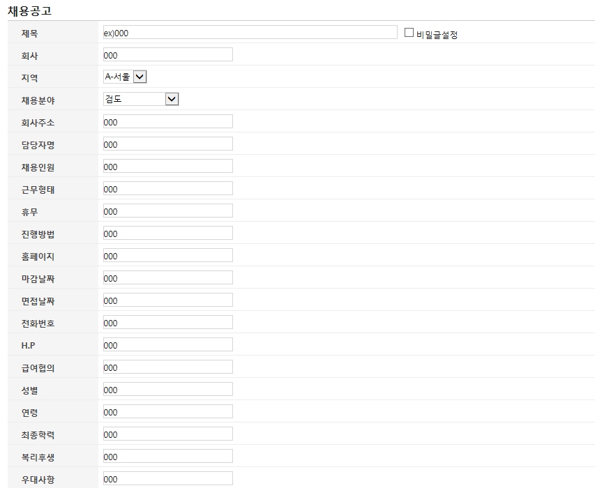 게시판 쓰기폼에서 예시로 글이 올라가게하고 필수입력값으로 설정하기