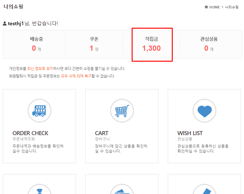 회원가입시 적립되는 부분만 그대로 되고 제품구입시 적립되던 부분이 적립되고 있지 않고 있네요.