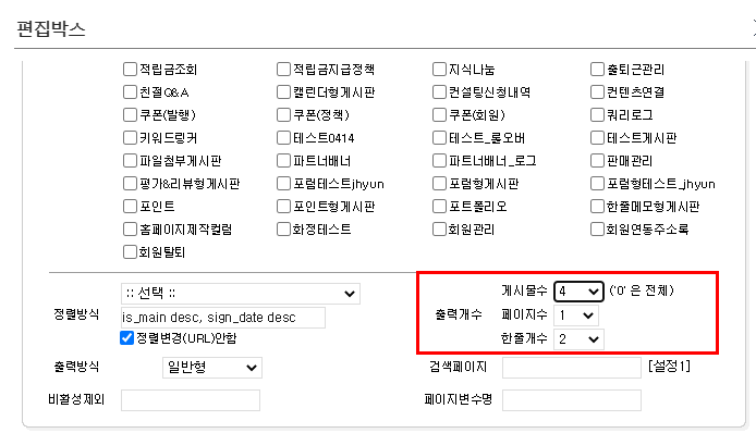 > 출력개수를 모바일버전과 동일하게 맞춰주시기 바랍니다.