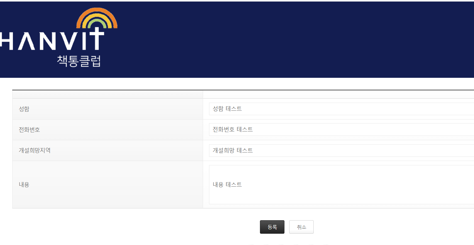테스트용으로 입력을 하면 (개설희망지역) / (내용) 이 부분이 제대로 작동을 안하는데..