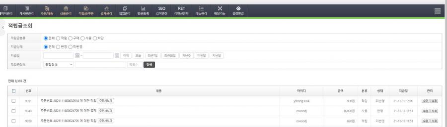 추가적으로 쇼핑몰 적립금에 관한 메뉴얼은 작성 중에 있습니다.