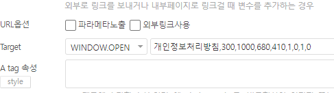 버튼형식&링크설정 매뉴얼(WINDOW.OPEN) : https://bos.kr/insiter.php?design_file=help_v.php&article_num=6