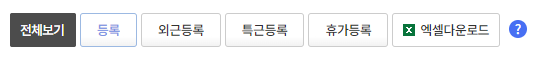 ▼ 특근을 등록하여 근무상태에 특근이 추가된 상태