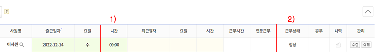 - 근무 상태는 ▶ 출퇴근상태 바로가기를 참고하시길 바랍니다.
