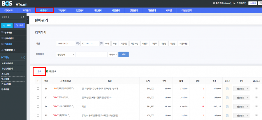 · 고객(업체)에게 상품을 판매한 내역을 등록할 수 있습니다.