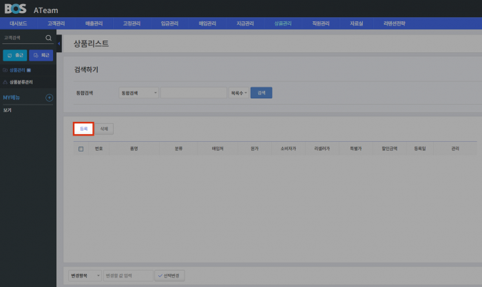 · 나의 기업에서 판매하는 상품을 등록하고, 원가, 소비자가 등을 관리할 수 있습니다.