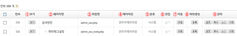 ■ 페이지관리 하단 관리메뉴