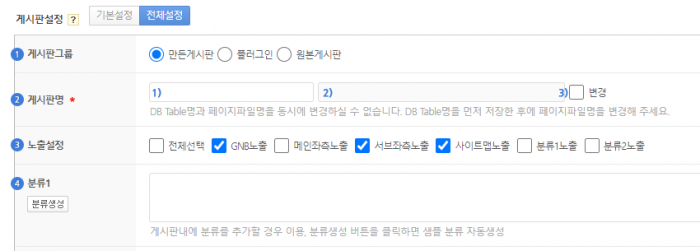 2) DB Table명 : 게시판 고유의 DB Table명이 게시판등록시 자동으로 지정됩니다.