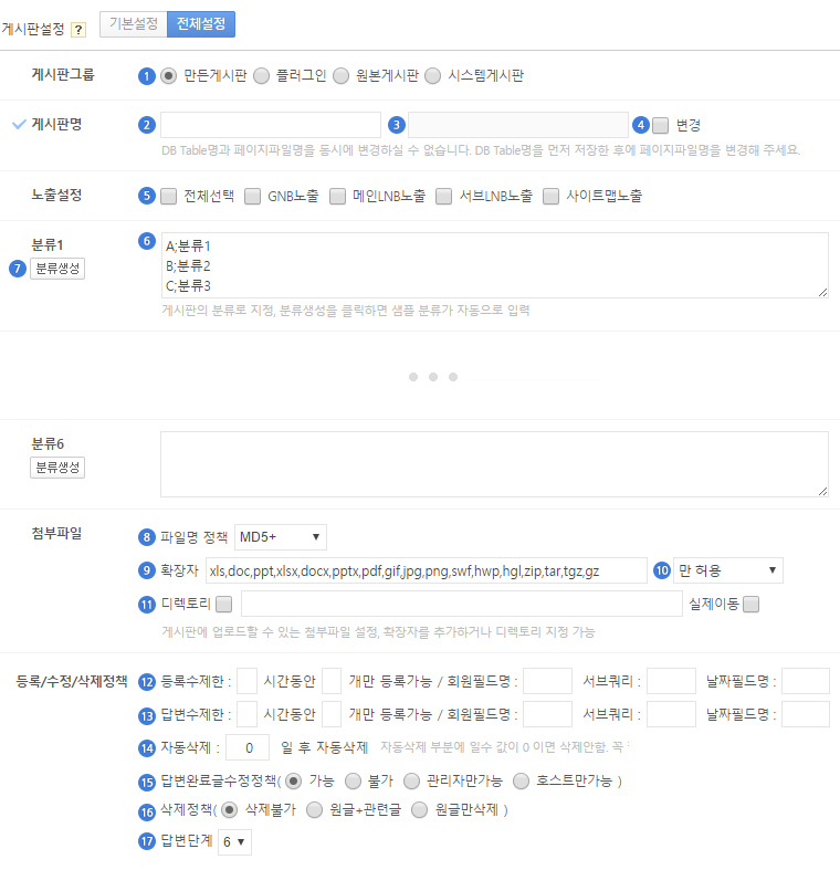 - 삭제불가 : 답변이 등록된 게시물의 삭제를 불가능하게 하려면 체크하세요.