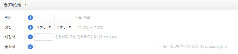 줄의 가로정렬, 세로정렬 속성을 선택하세요.