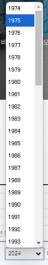 현재 연도를 기준으로 n 값만큼 앞뒤로 설정된 범위 내의 연도를 선택할 수 있는 선택상자가 나옵니다.